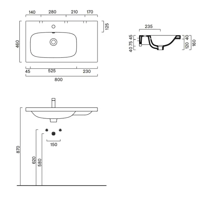 Catalano Alvea Раковина 80x46см чаша слева, с 1 отв., цвет: белый глянцевый