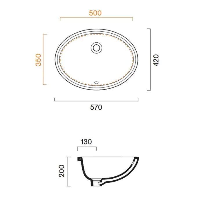 Catalano Italy Раковина 57х42см., встраиваемая под столешницу с переливом, цвет: белый глянцевый