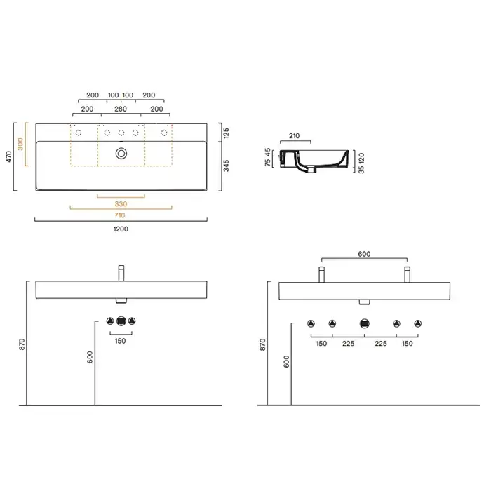 Catalano Premium Раковина 120х47см, без отв., подвесная, цвет: белый глянцевый