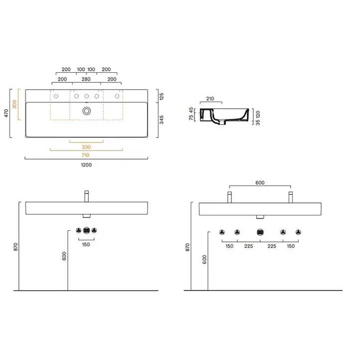 Catalano Premium Раковина 120x47см, с 1 отв., цвет: белый глянцевый
