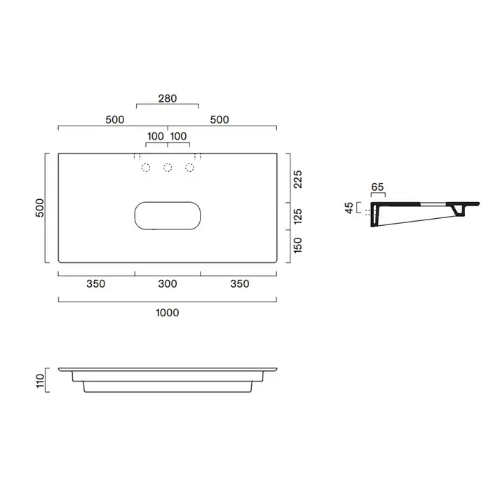 Catalano Столешница керамическая 100x50см, с отверстием , цвет: Tortora Satinato
