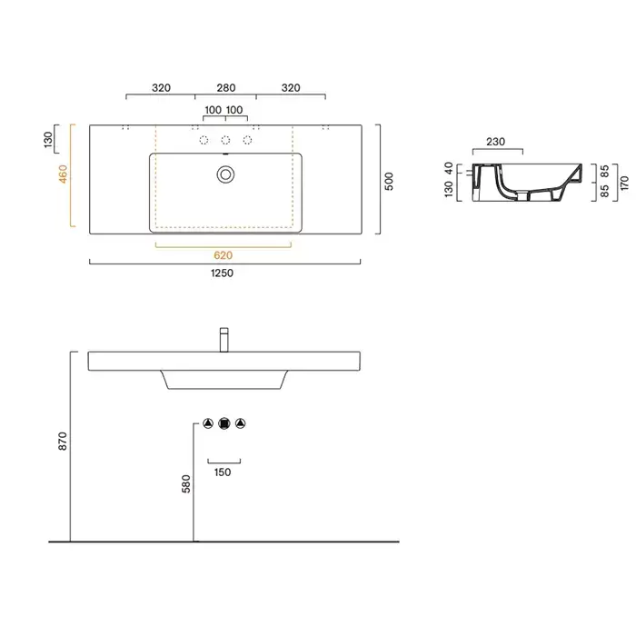 Catalano Zero Раковина 125x50см, без отв., цвет: белый глянцевый