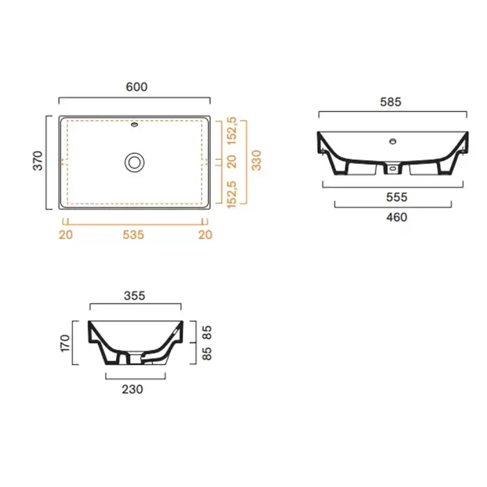 Catalano Zero Раковина 60x37см встраиваемая, без отв., цвет: белый глянцевый