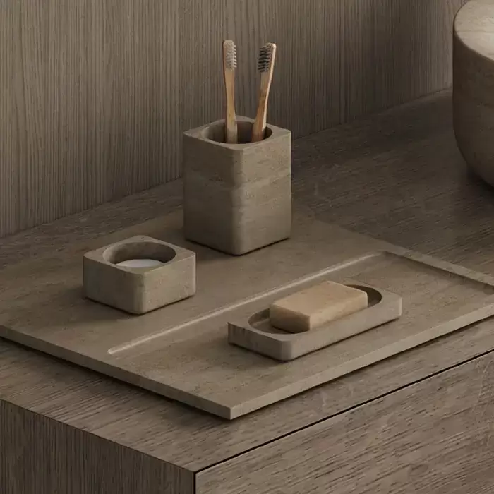 Dea Design Marble Контейнер для ватных дисков, настольный, из мрамора, 8х8хh4см., цвет: Travertine