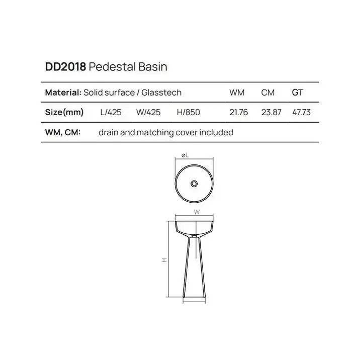 Dea Design Pedestal Basin Раковина 42.5х42.5х85см., напольная, без отв., Solid Surface, цвет: Black №16