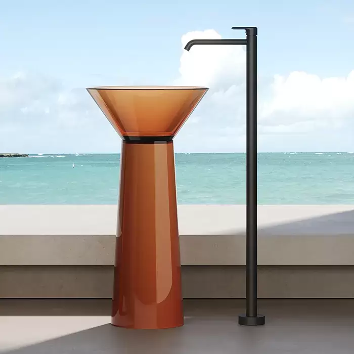 Dea Design Pedestal Basin Раковина 48x48х90см., напольная, без отв., Glasstech, прозрачная смола, цвет: Sunset R1