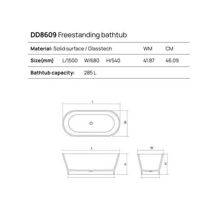 Dea Design Shadow Ванна 150х68х54см., отдельностоящая, Solid Surface, цвет: Black №16