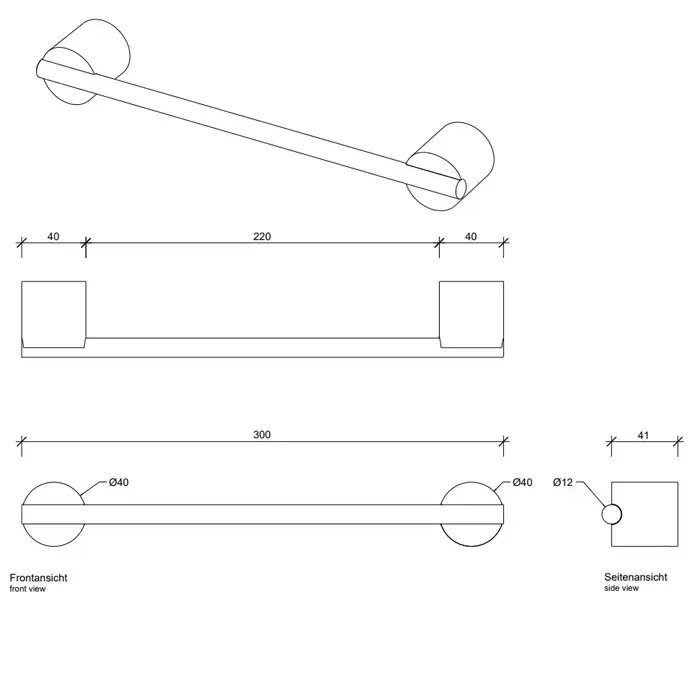 Decor Walther Black Stone HTE30 Полотенцедержатель 30см, подвесной, цвет: черный матовый / сталь матовая