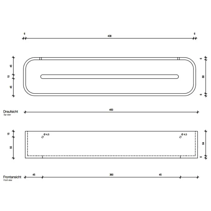 Decor Walther Black Stone Полочка для душа 45x10см., подвесная, цвет: черный матовый/хром