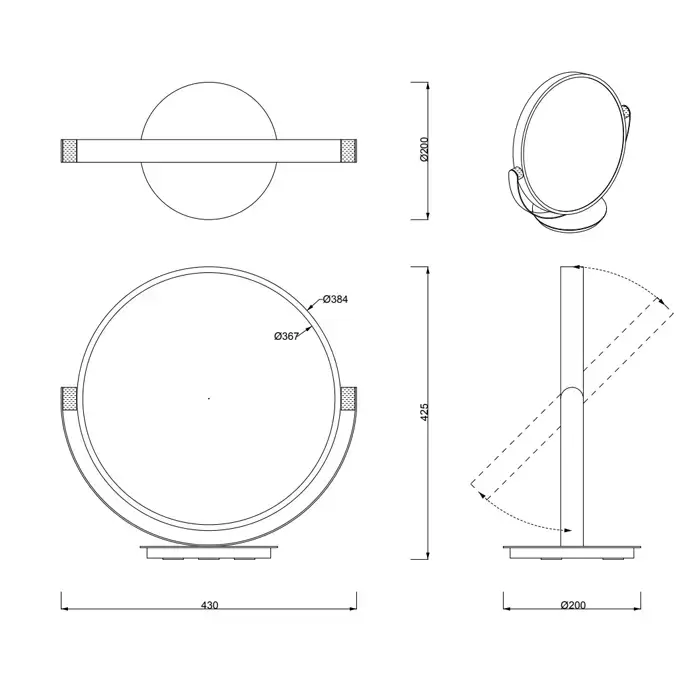 Decor Walther Club Vanity Косметическое зеркало 43см, настольное, увел. 5x, цвет: черный матовый / хром