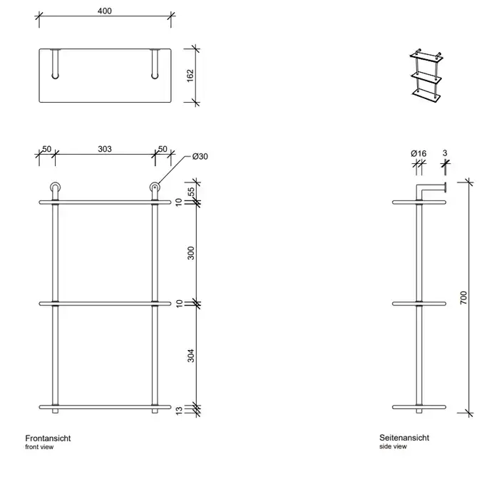Decor Walther DW 016 Полочка 40x16x65см, 3 стеклянных яруса, подвесной, цвет: хром
