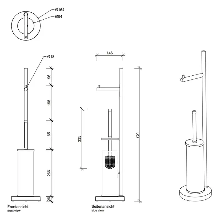 Decor Walther DW 670 Напольная стойка 75.1см., с ершиком и бумагодержателем, цвет: хром