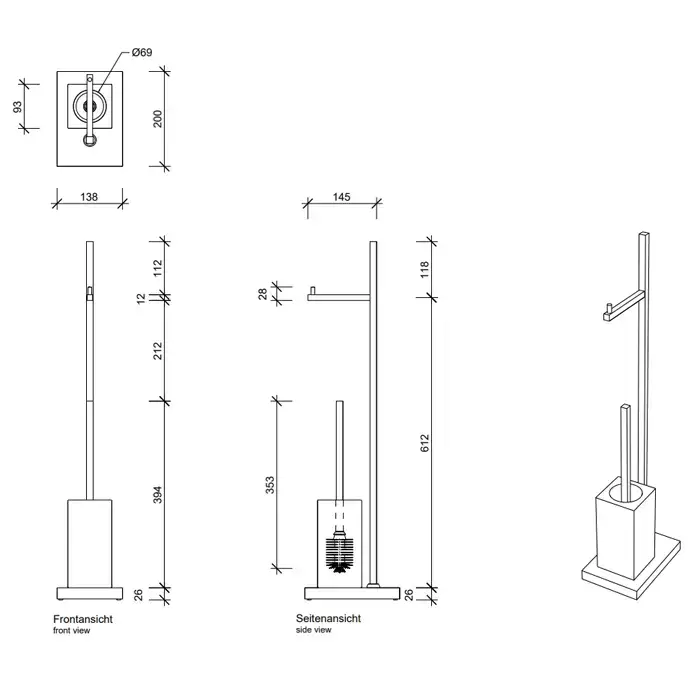 Decor Walther DW 6710 Напольная стойка 73см., с ершиком и бумагодержателем, фарфор, цвет: хром / белый