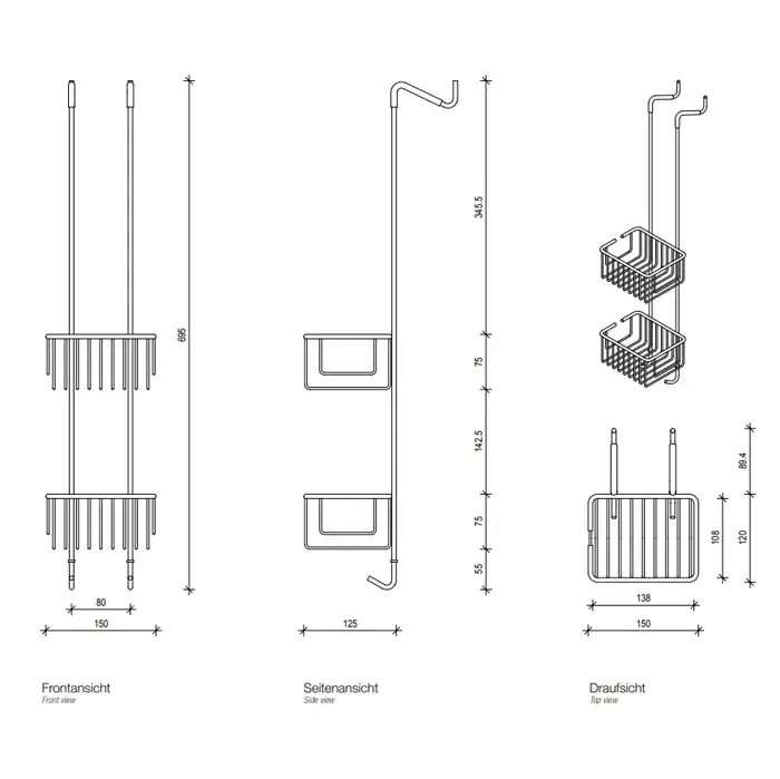 Decor Walther DW HGK2 Корзина универсальная 15x12x70см для душа, подвесная, цвет: черный матовый