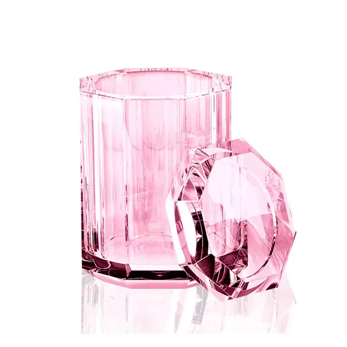 Decor Walther Kristall BMD Баночка универсальная 9x9x14см, с крышкой, настольная, цвет: хрусталь розовый