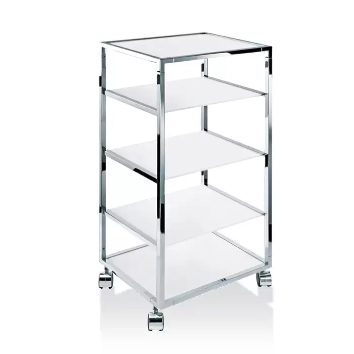 Decor Walther RW 2 Стеллаж передвижной 38x30x80см, стекло белое, напольный, цвет: хром