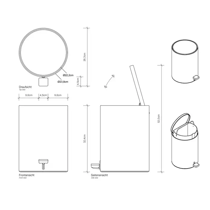 Decor Walther TE 50 Ведро 23.5xh32см, с педалью и крышкой, softclose, напольное, цвет: белый матовый