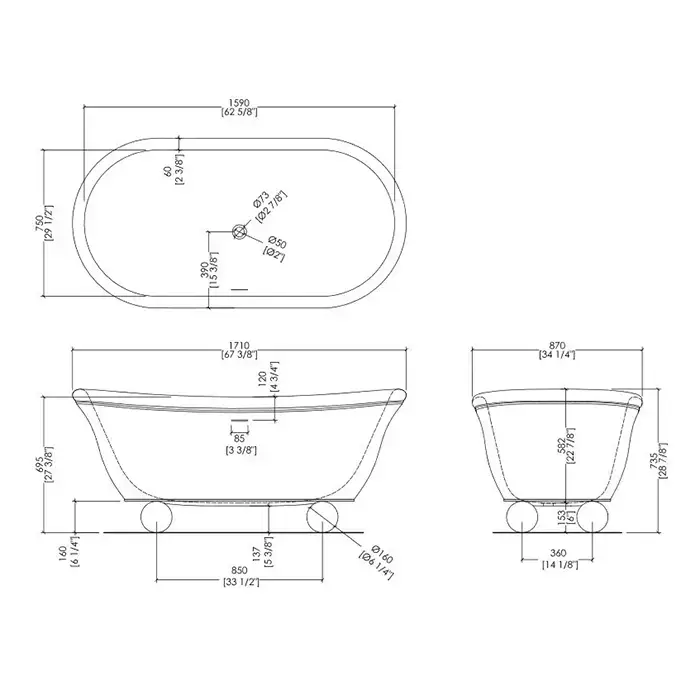 Devon&Devon Aurora Bijoux Ванна 171х87х74 см, отдельностоящая, ножки Sfera хром, цвет: белый матовый