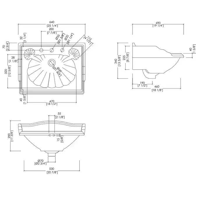 Devon&Devon Cambridge Раковина 64х49 см, 3 отв., цвет: белый