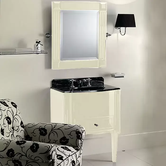 Devon&Devon Domino, Комплект мебели 68 см, тумба напольная со столешницей Nero Marquina и встроенной раковиной черной, Цвет: cream