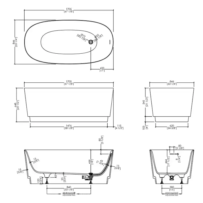Devon&Devon Dove Ванна отдельностоящая, 170.5х64.7х84.6см., White tec plus, с донным клапаном, цвет: белый