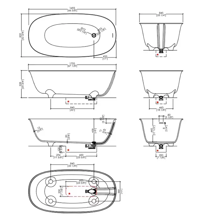 Devon&Devon Dove Ванна отдельностоящая, 170.5х85 см, из White tec plus, на ножках, с донным клапаном, цвет: белый