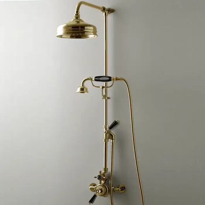 Devon&Devon Душевая стойка, с термостатическим смесителем, верхним душем 20см., и ручным душем, цвет: черный/светлое золото