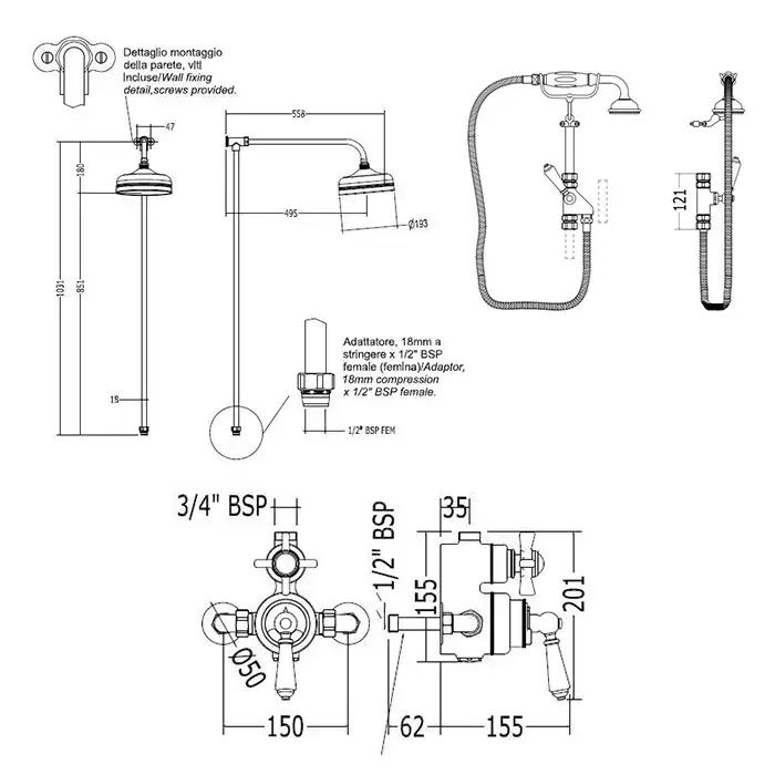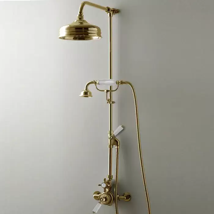 Devon&Devon Душевая стойка, с термостатическим смесителем, верхним душем 20см., и ручным душем, цвет: белый/светлое золото