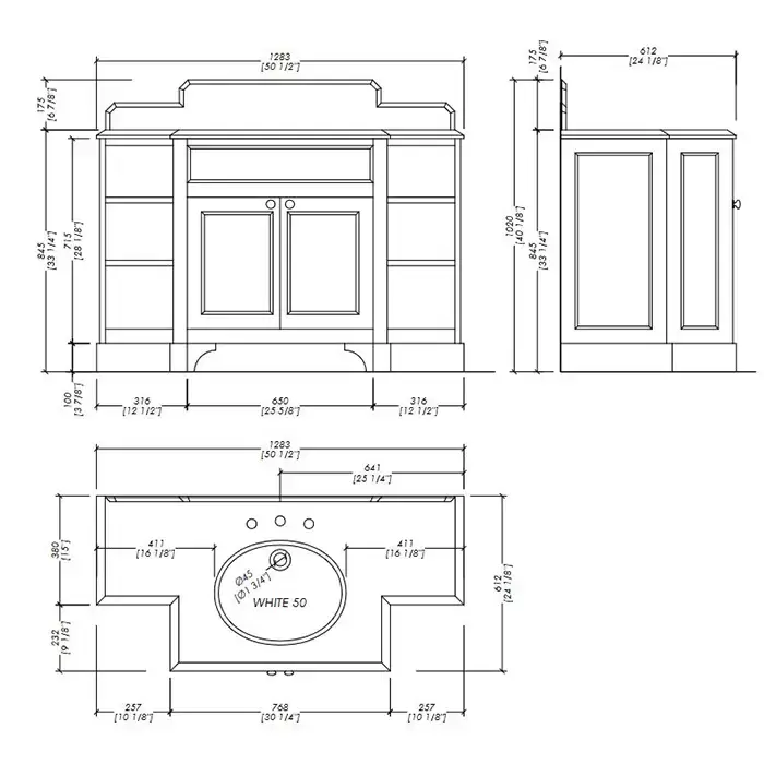 Devon&Devon Flair Тумба под раковину 128х102см., со столешницей из мрамора Calacatta Borghini и раковиной White50, цвет: Off White