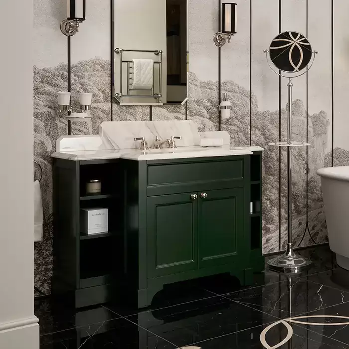 Devon&Devon Flair Тумба под раковину 128х102см., со столешницей из мрамора Calacatta Borghini и раковиной White50, цвет: English Green