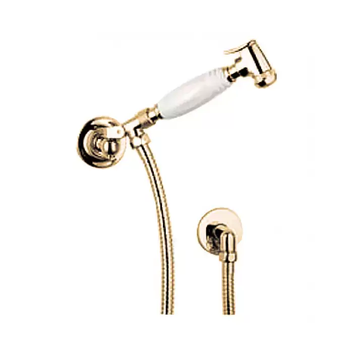Devon&Devon Гигиенический душ с держателем, шлангом и выпуском из стены, с ручкой белой, цвет: золото светлое