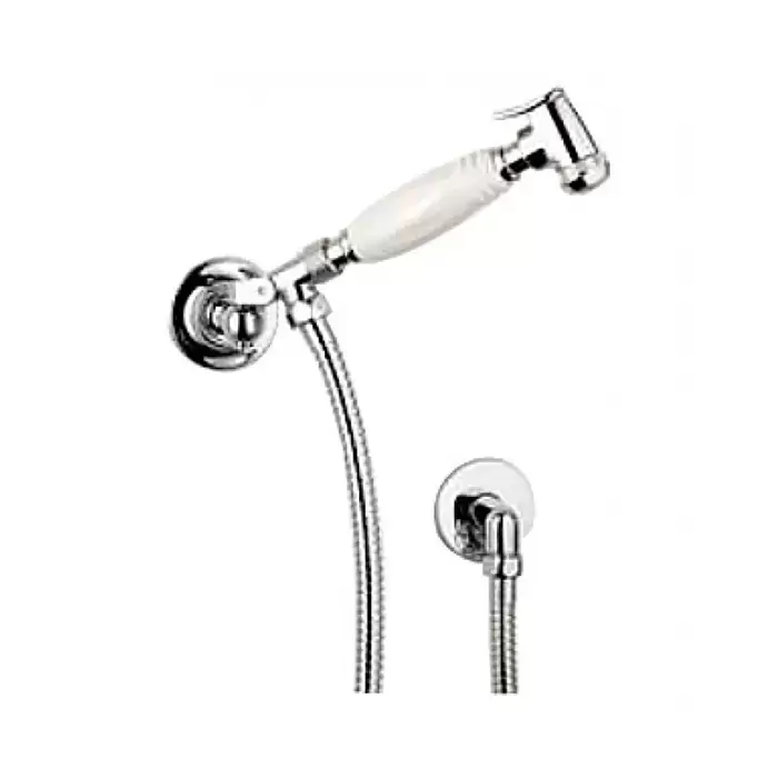 Devon&Devon Гигиенический душ с держателем, шлангом и выпуском из стены, с ручкой белой, цвет: хром