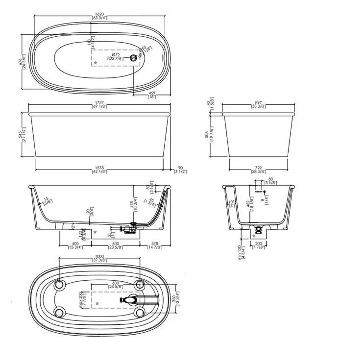 Devon&Devon Holiday Ванна 175.7х54,55х89.7 см, из WHITE TEC PLUS, с донным клапаном с крышкой из WHITE TEC, отдельностоящая, цвет: белый
