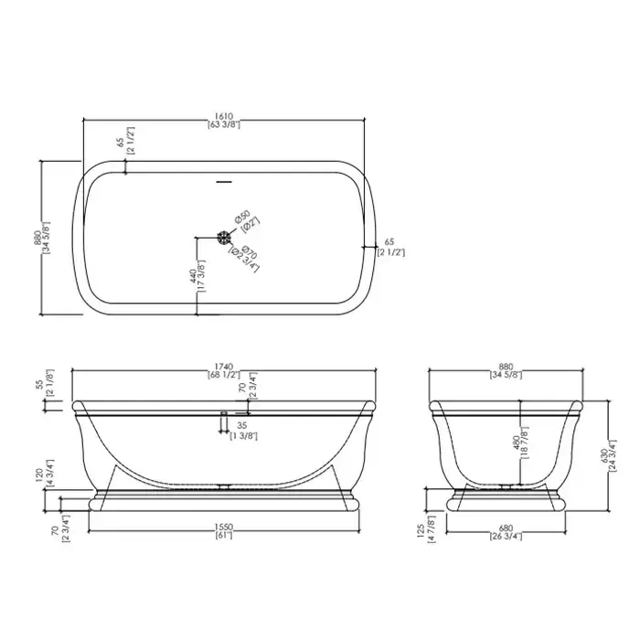 Devon&Devon Hollywood Ванна, отдельностоящая, без отверстий 177.5x88.5x64см, композитная цвет: RAL 9011графитно-черный (без сливного гарнитура)