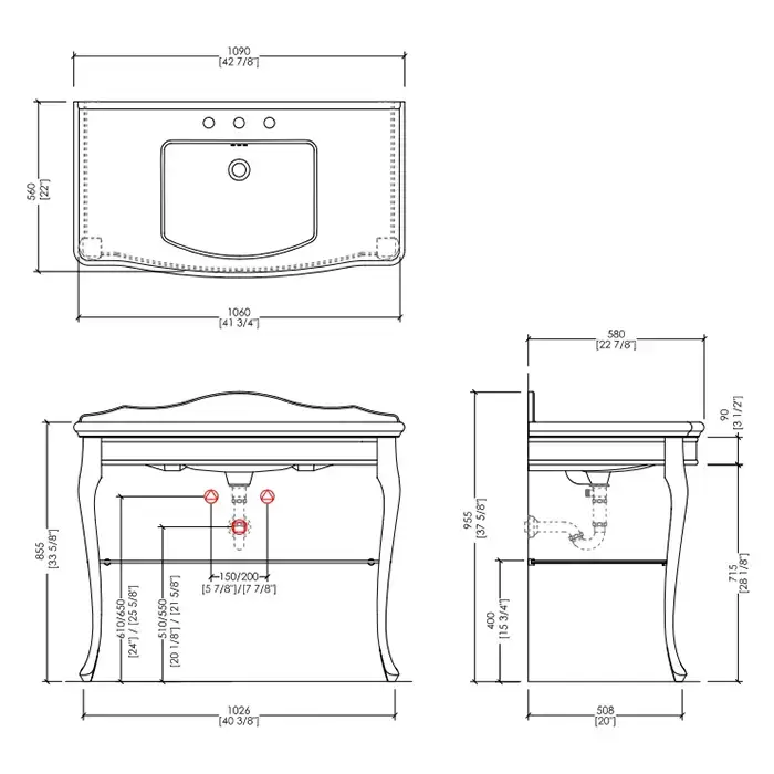 Devon&Devon Jacqueline Декоративная структура с раковиной 109х56см, на 3 отв, напольная, цвет: хром/белая керамика