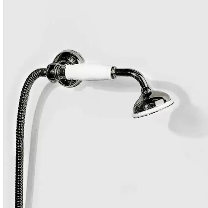 Devon&Devon Лейка с гибким шлангом, выпуском-держателем настенным, ручка белая, цвет: никель блестящий
