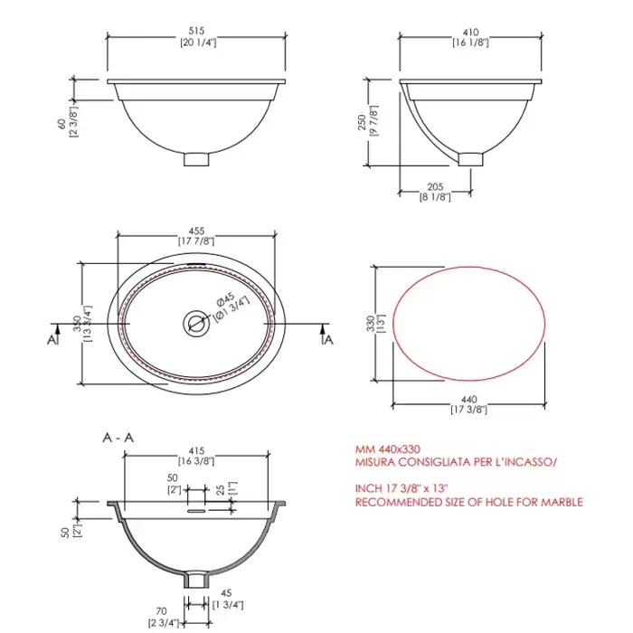 Devon&Devon Rose 50 Раковина 52х41 см, без отв., со сливом-переливом, врезная снизу под столешницу, цвет: белый