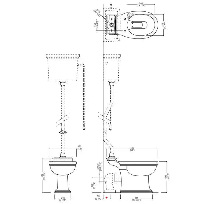 Devon&Devon Rose Унитаз 66x35,5cм, с высокой трубой, сиденье из массива дуба, фурнитура золото