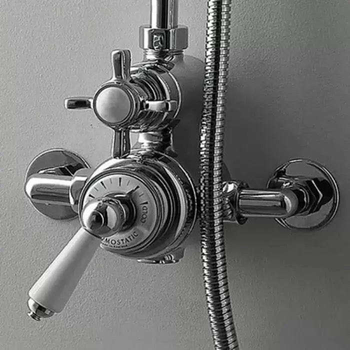 Devon&Devon Термостат наружного монтажа, для душевой для стойки, с белой ручкой, цвет: хром