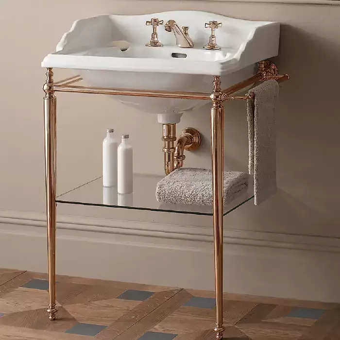 Devon&Devon Tiffany Декоративная структура 79х41см, с раковиной на 1 отв., напольная, цвет: золото/белая