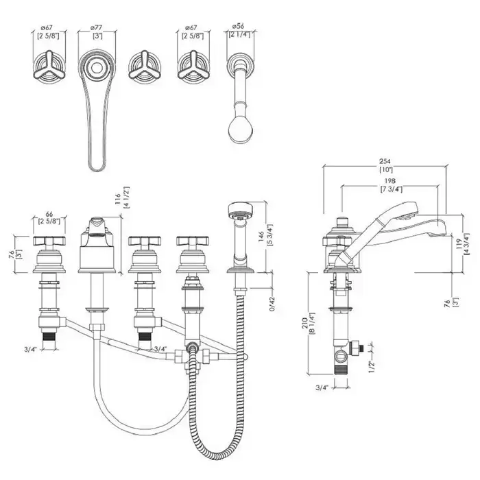 Devon&Devon Tribeca Смеситель на борт ванны , на 5 отв, с ручной лейкой и переключателем, цвет: никель блестящий