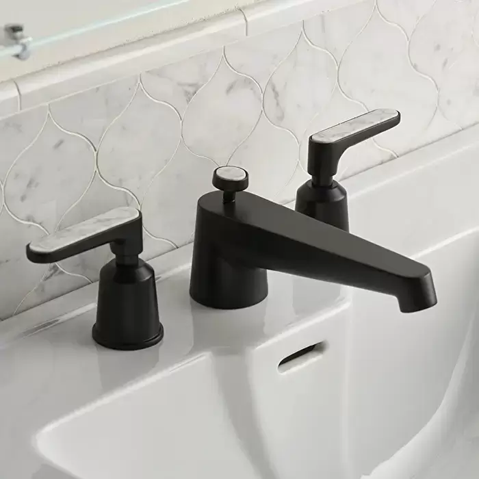 Devon&Devon Twenties Смеситель для раковины, на 3 отв., с донным клапаном, цвет: черный матовый/Bianco Carrara