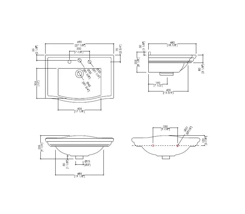 Devon&Devon Westminster Раковина 69х49 см, 3 отв., на пьедестале, цвет: белый
