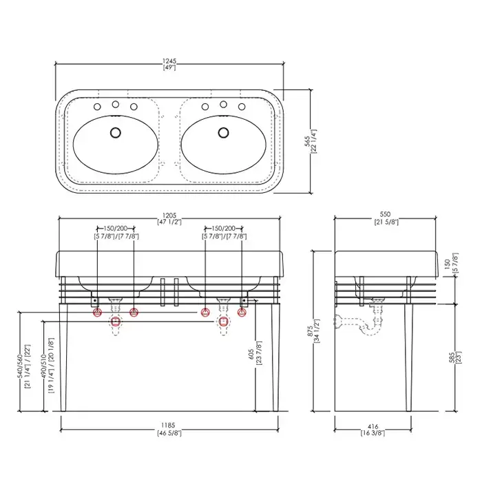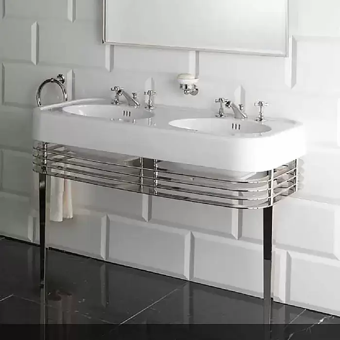 Devon&Devon Wide Blues Консоль 124.5х56.5см, с двойной раковиной на 3 отв, напольная, цвет: хром/белая
