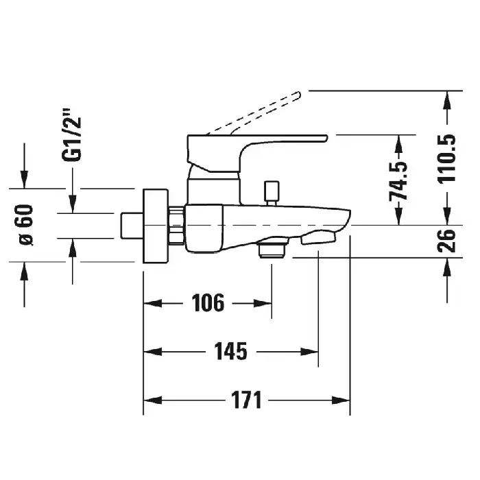 Duravit B.1 Смеситель для ванны, настенный, с переключателем излив/ручной душ, цвет: хром