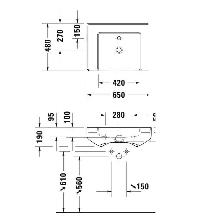 Duravit Bento Starck Box Раковина подвесная 65х48см, с 1 отв., HygieneGlaze, цвет: белый глянцевый