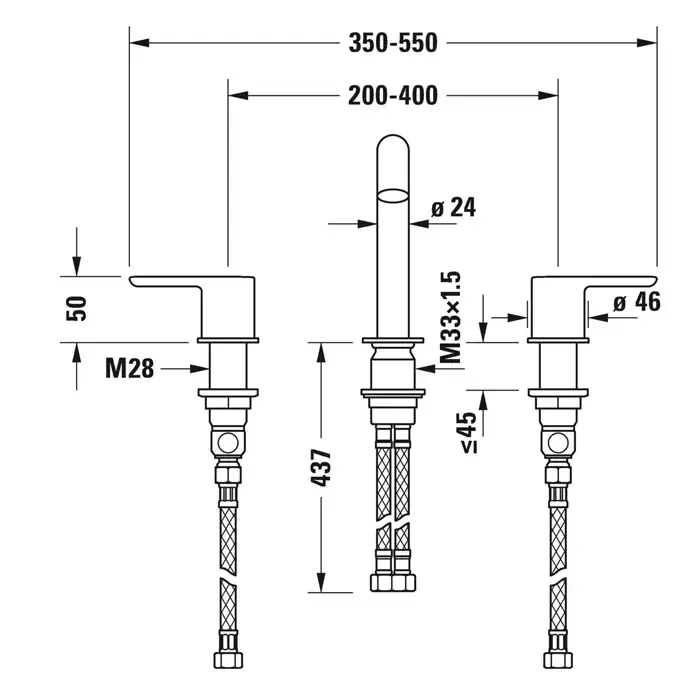 Duravit C.1 Смеситель для раковины, 3 отв., излив 160мм, цвет: хром