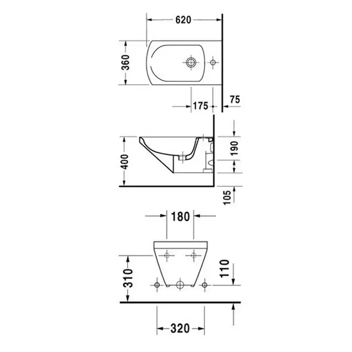 Duravit Caro Подвесное биде 620*360мм, цвет: белый