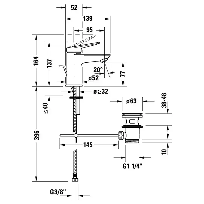 Duravit Circle M Смеситель для раковины, на 1 отв., с донным клапаном, цвет: черный матовый
