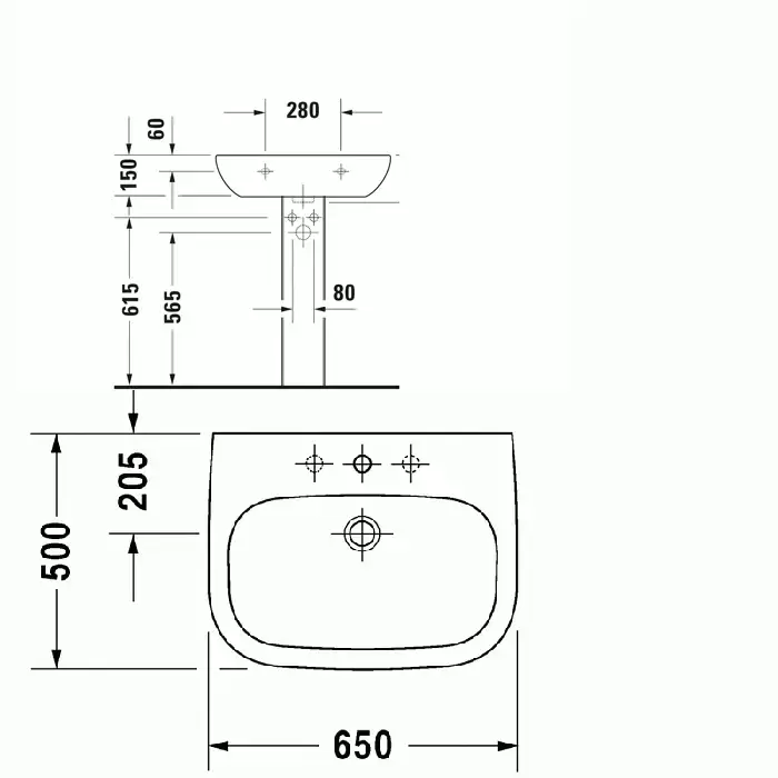 Duravit D-Code Раковина с перел., с 1 отв. под смес., 65х50см., цвет: белый